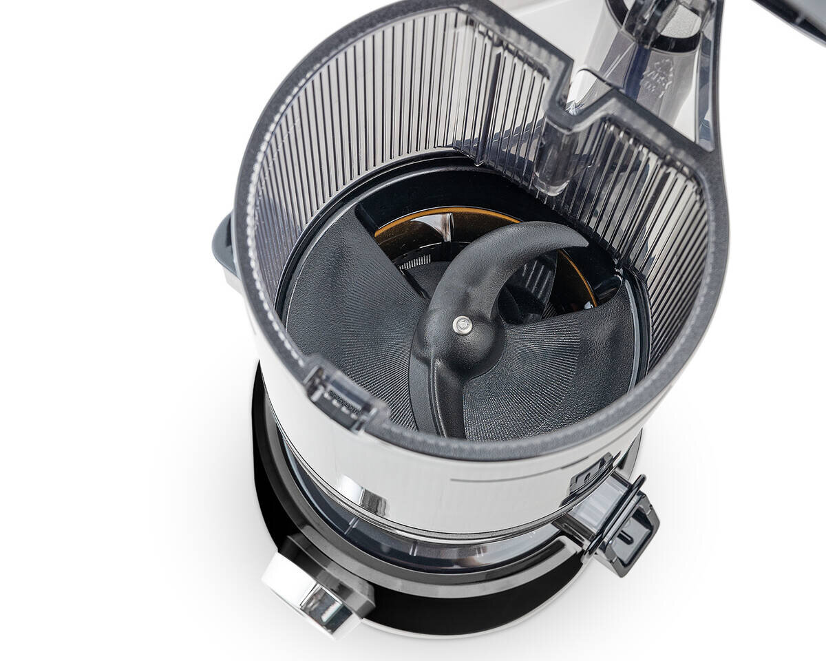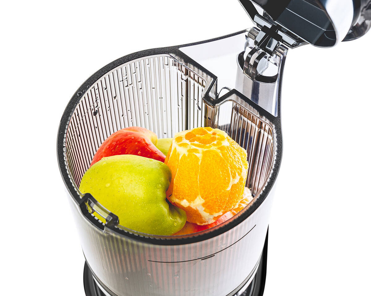 Hands free šnekový odšťavovač Sana Juicer 878 s automatizovanou násypkou na ovocie a zeleninu.